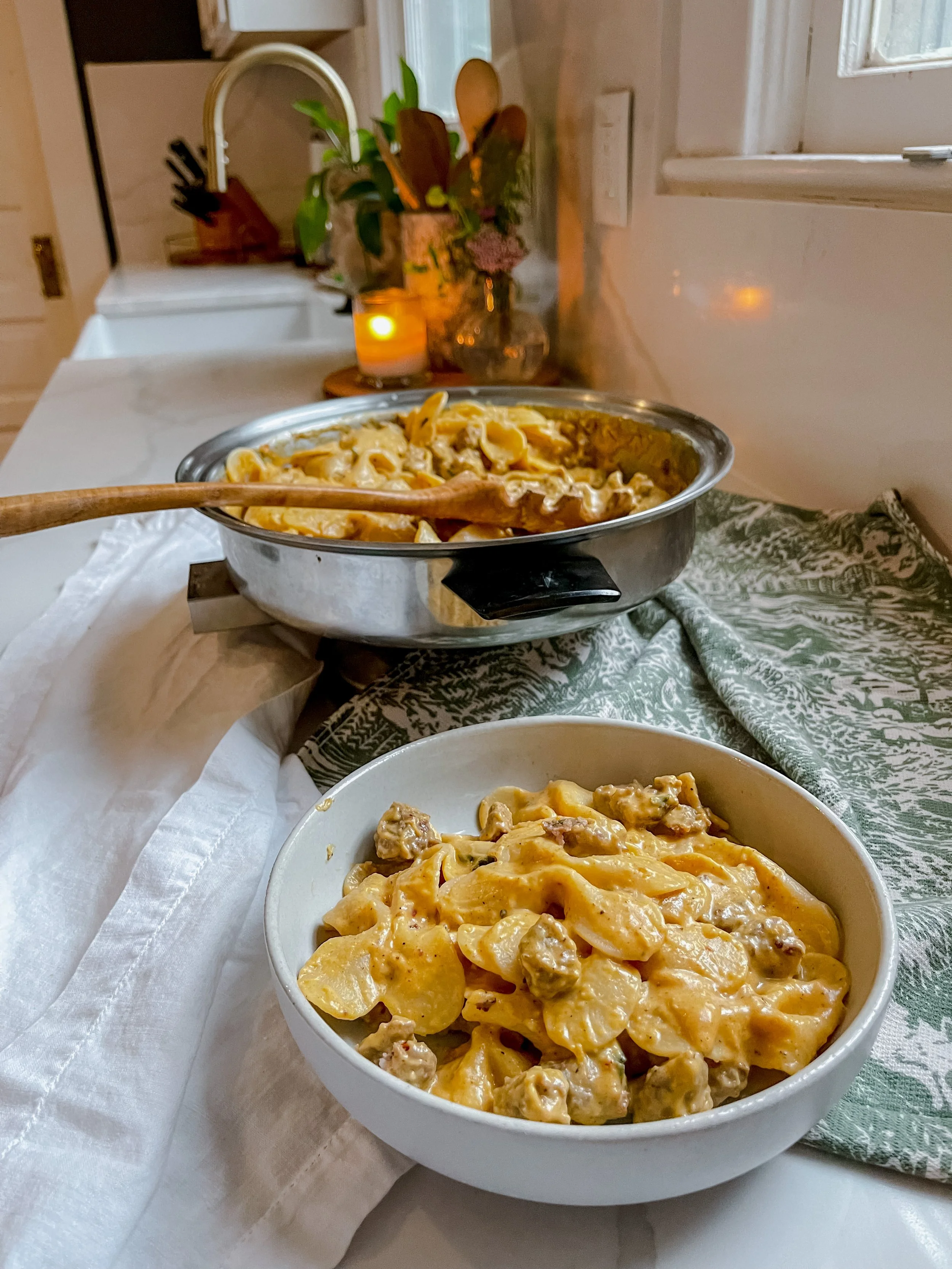 Vegetarian Butternut Squash Pasta: Omit the sausage, add more butternut squash and onion.