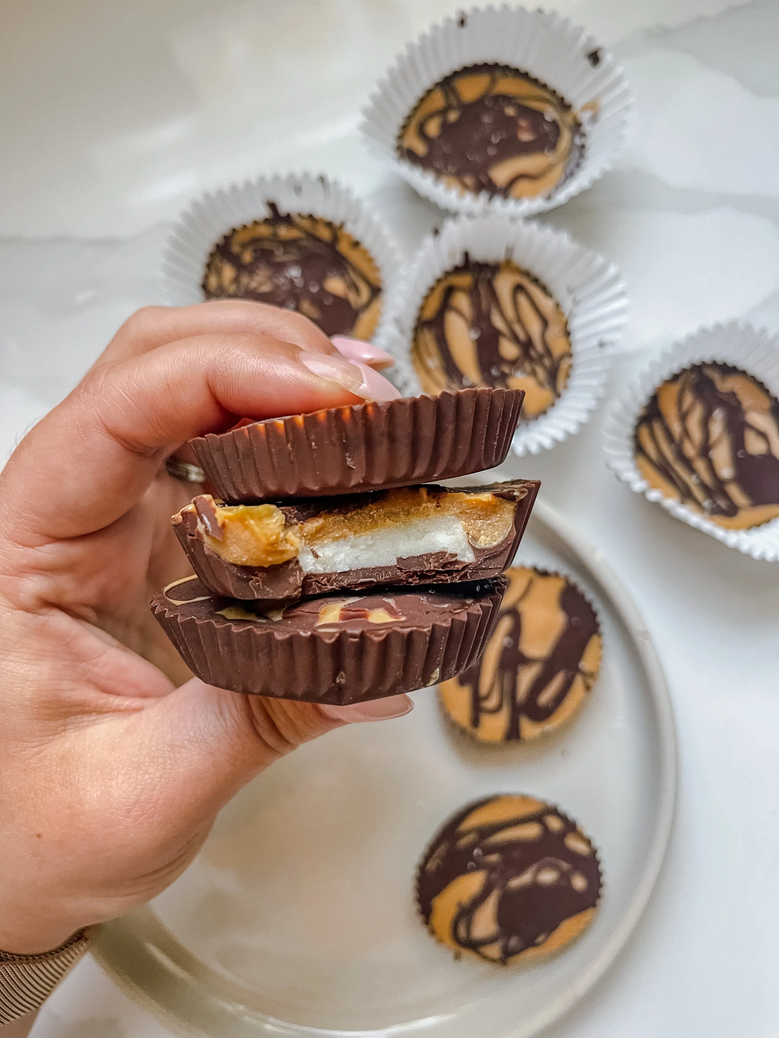 I have been on a massive peanut butter kick recently. I made my Homemade Nut Butter, Homemade Nutter Butters, and now my Homemade Banana Reese’s Cups! You can definitely eliminate the banana in the middle, or add in a different slice of fruit if you wanted. Another good option would be a strawberry or blueberries in the middle. These are so easy to make for a weeknight snack or dessert.