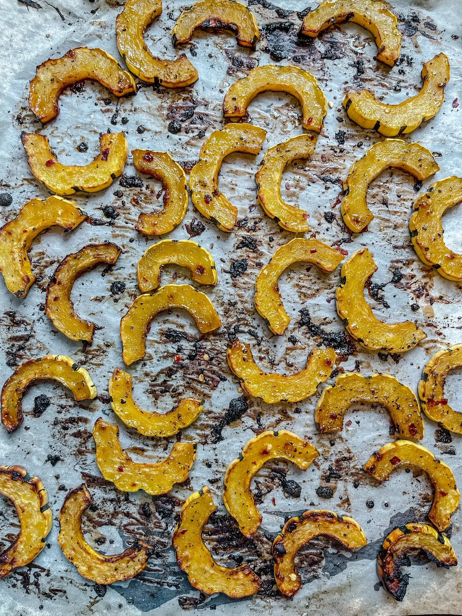 I like to make a bunch of these delicata squash fries and use them in salads or even on pizza. If you’ve never cooked with this squash before, trust me and grab one the next time you see it at the grocery store.
